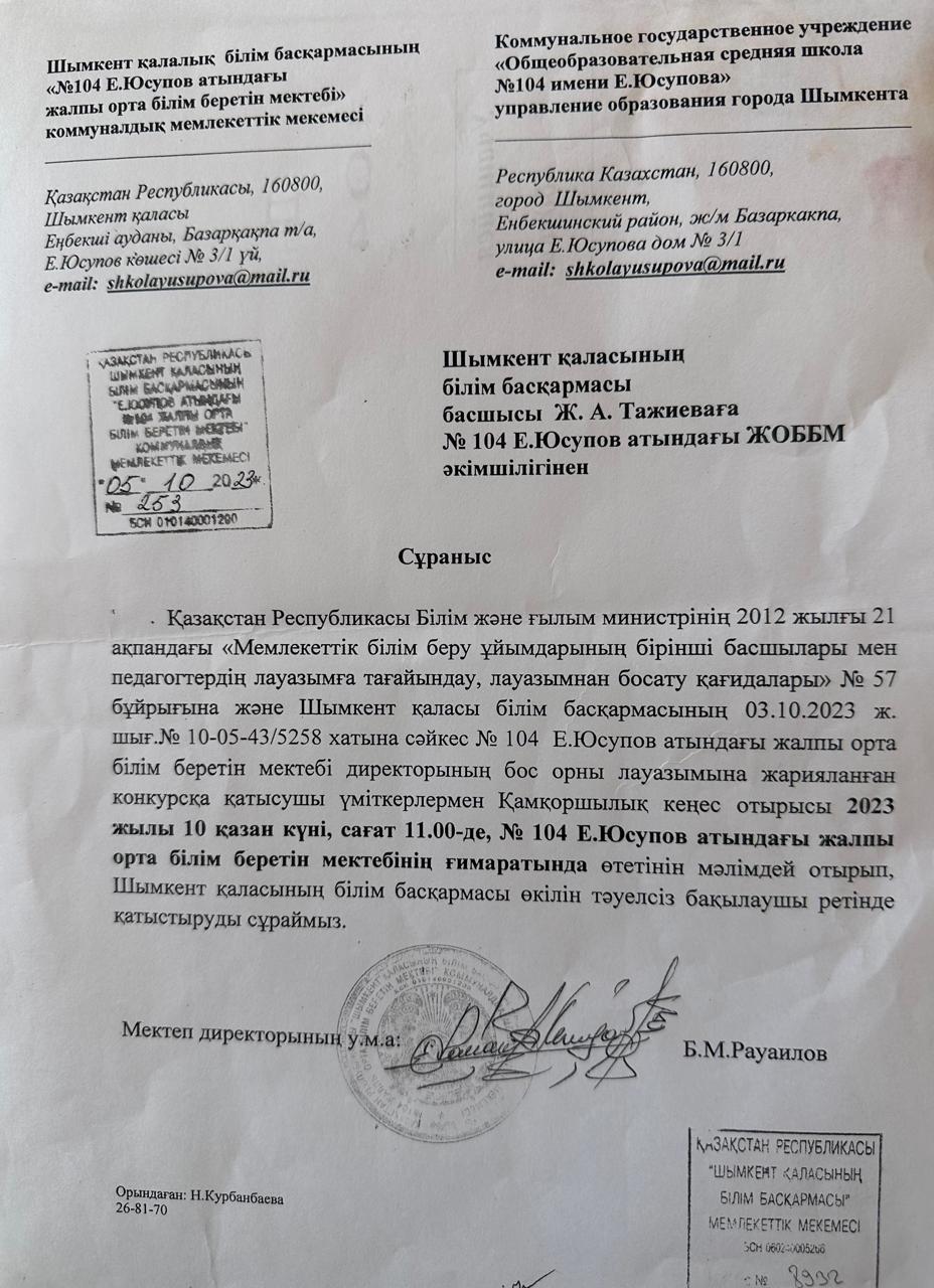 2023-2024 оқу жылындағы Сұраныс хат » Общеобразовательная школа №104 имени Е. Юсупова