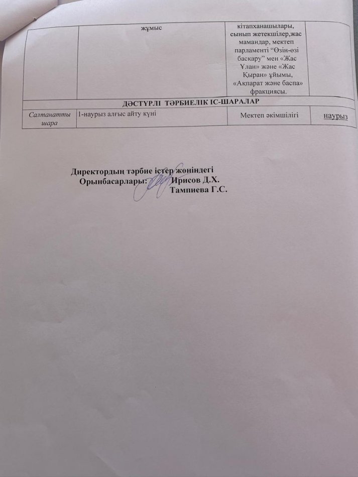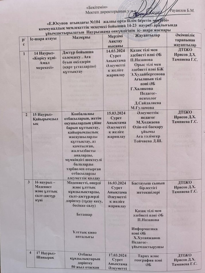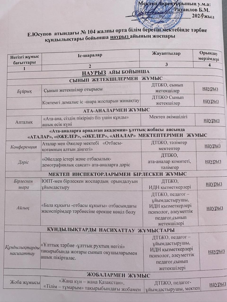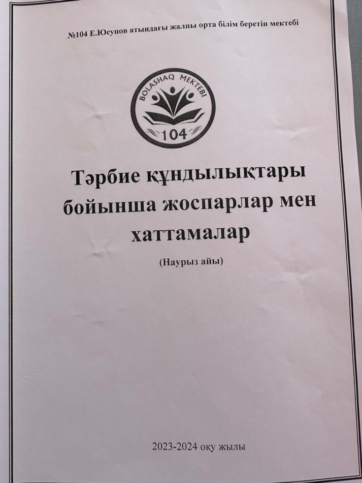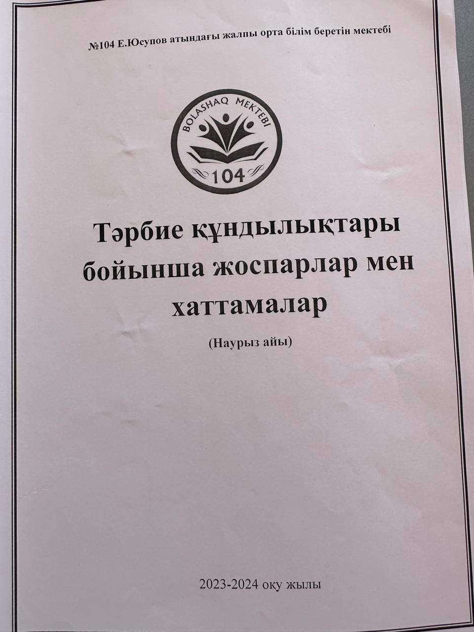 Тәрбие құндылықтары бойынша жоспарлар мен хаттамалар (НАУРЫЗ АЙЫ) » Общеобразовательная школа №104 имени Е. Юсупова