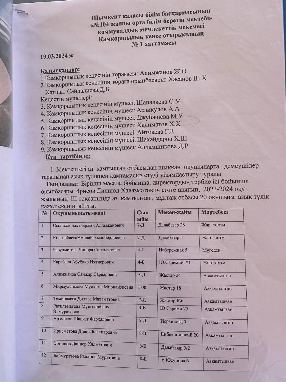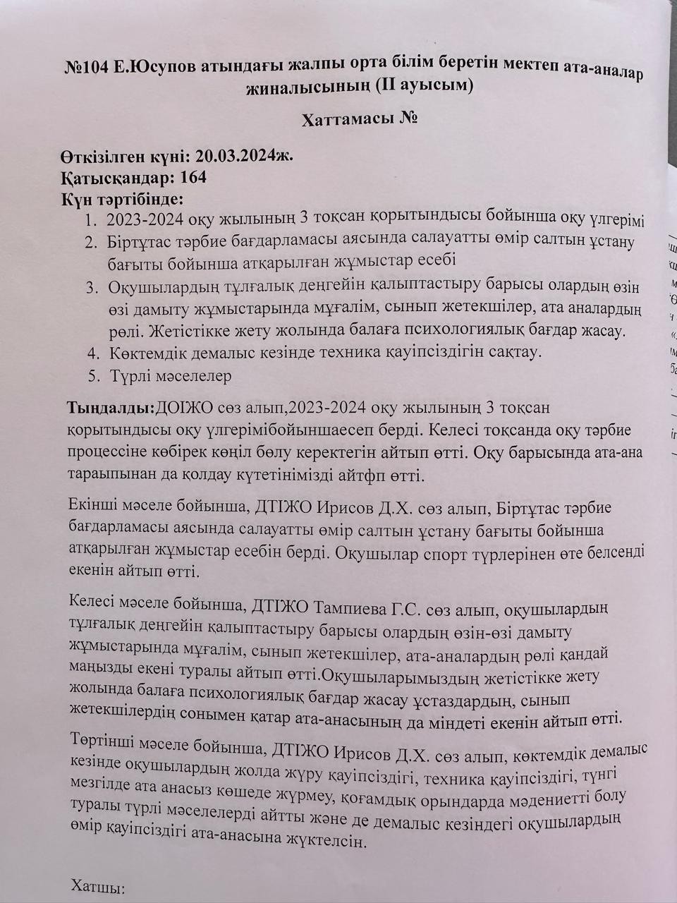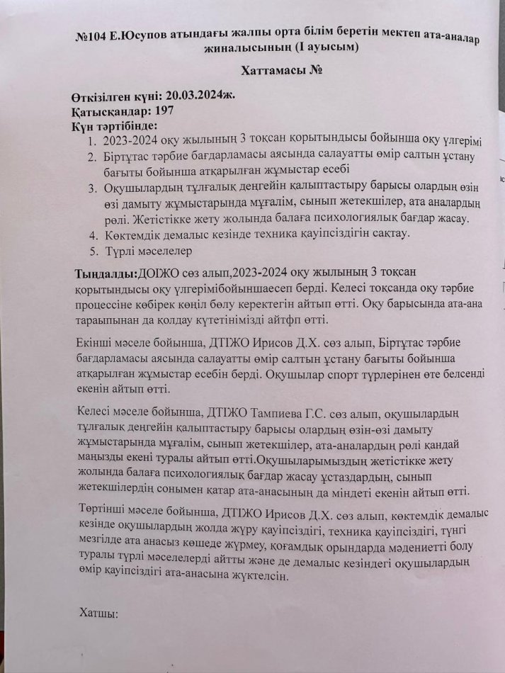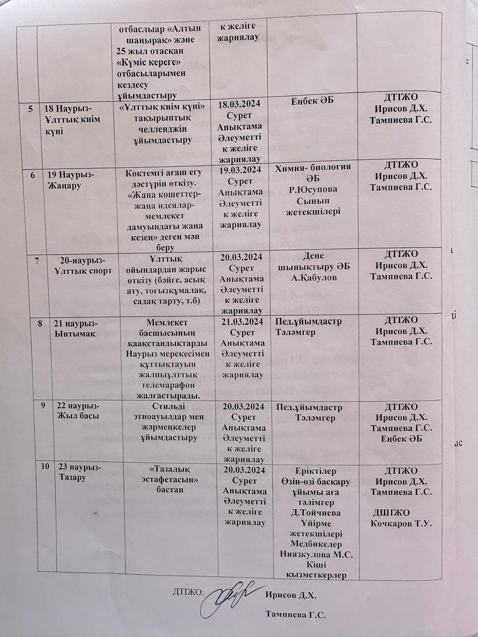 Тәрбие құндылықтары бойынша жоспарлар мен хаттамалар (НАУРЫЗ АЙЫ) » Общеобразовательная школа №104 имени Е. Юсупова