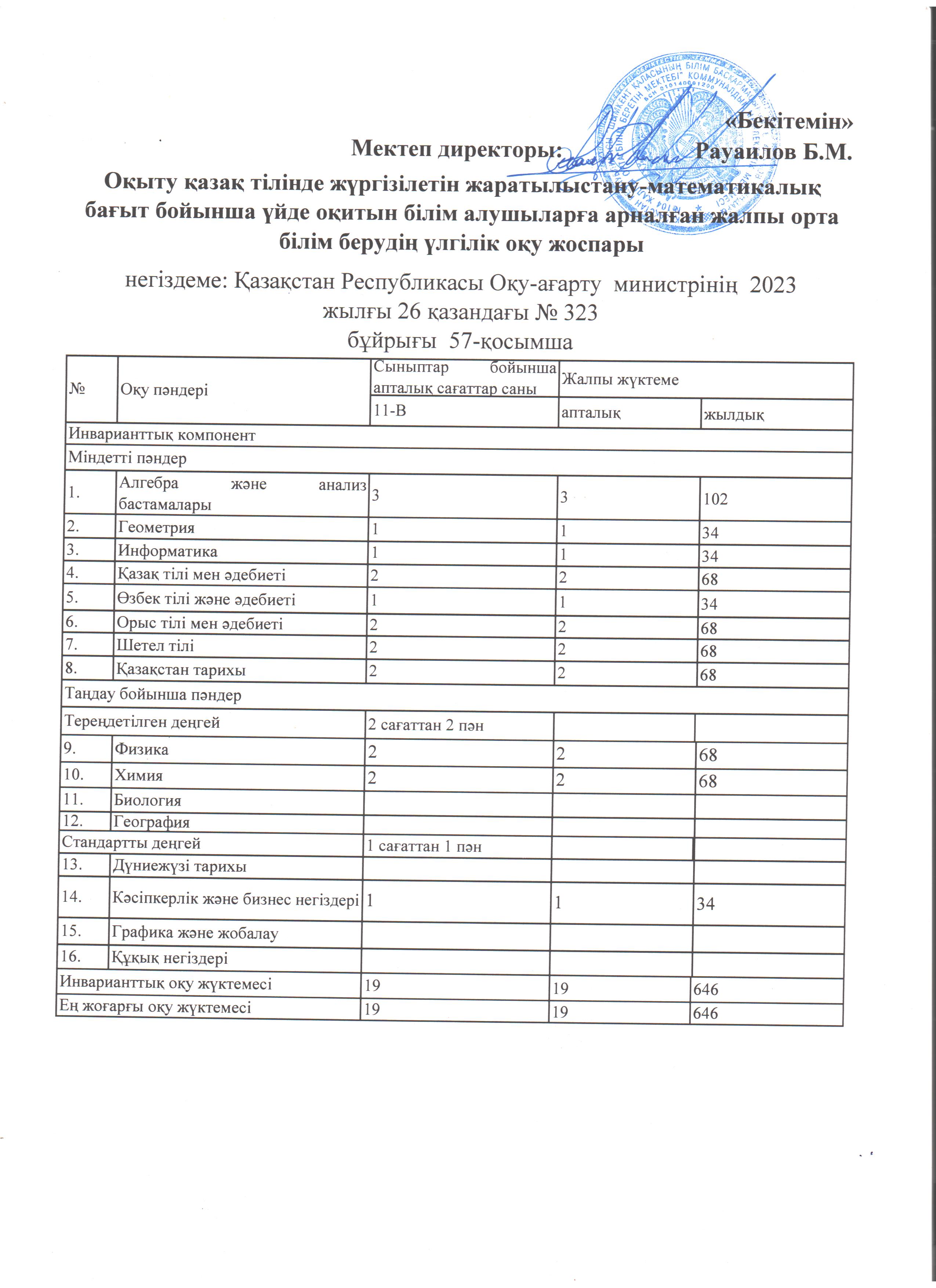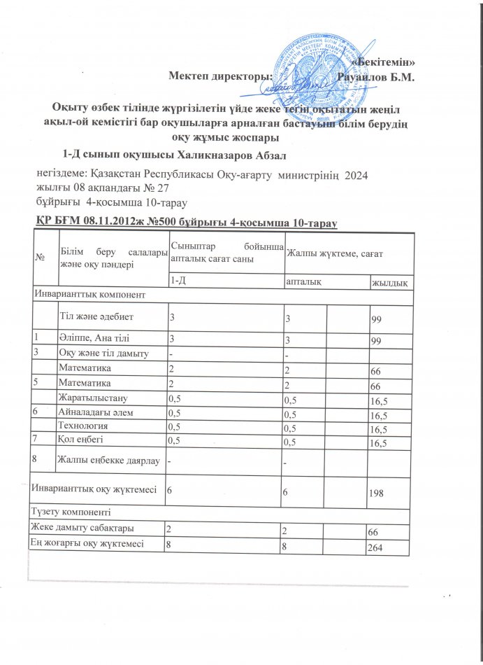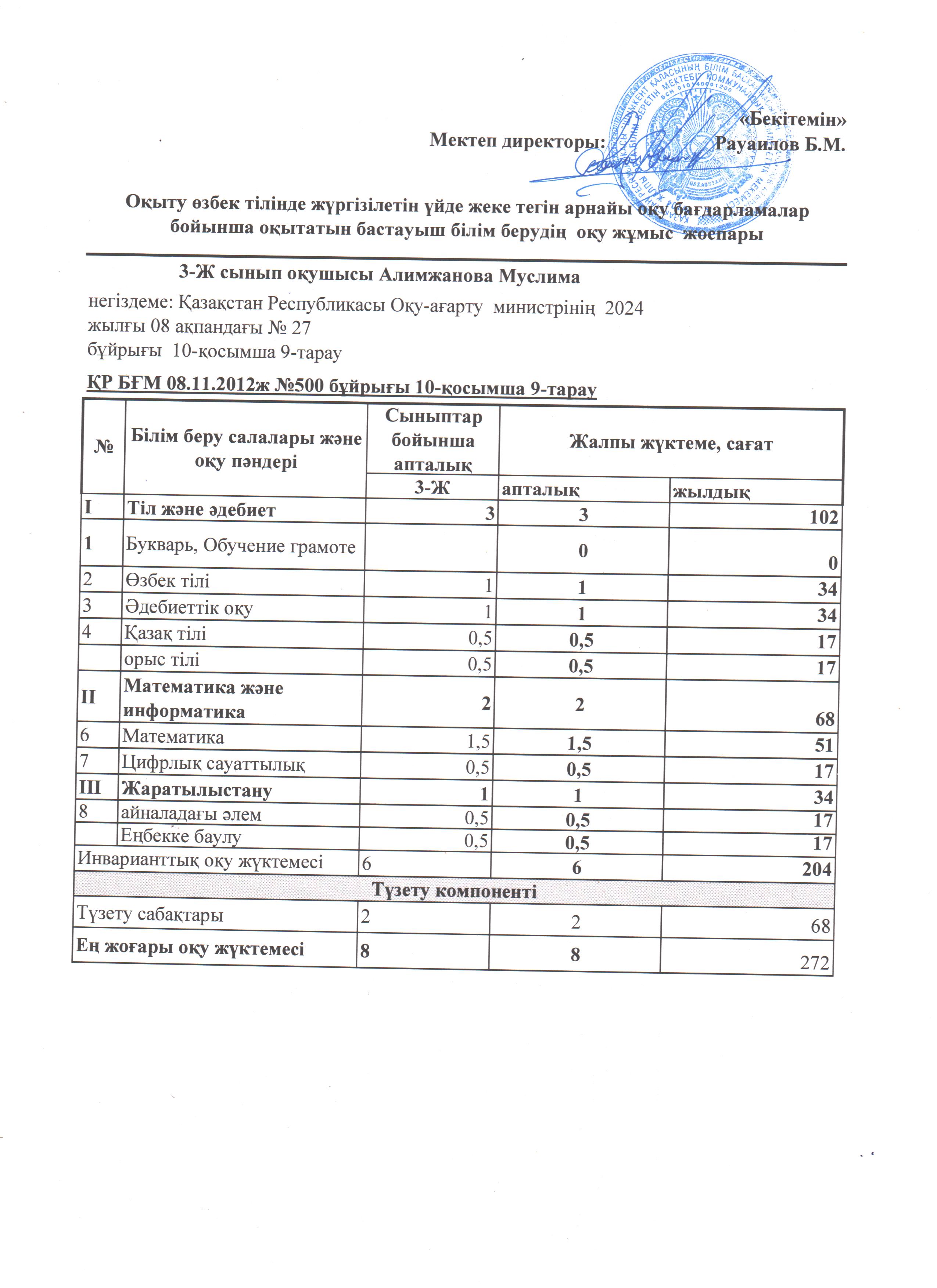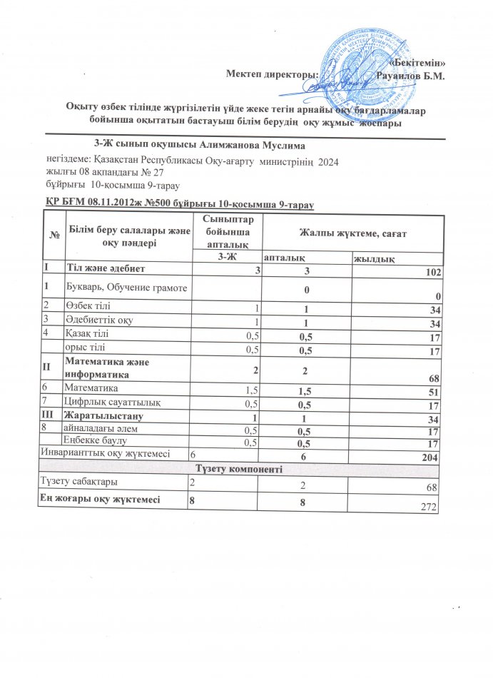 ҮЙДЕ ОҚЫТУ ОҚУ ЖОСПАРЫ 2024-2025