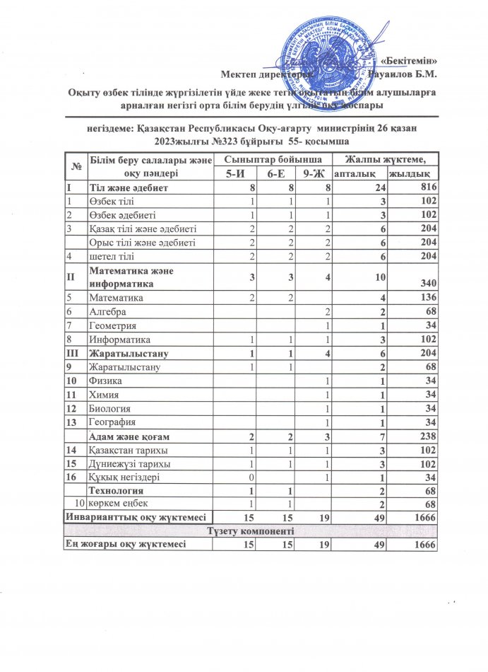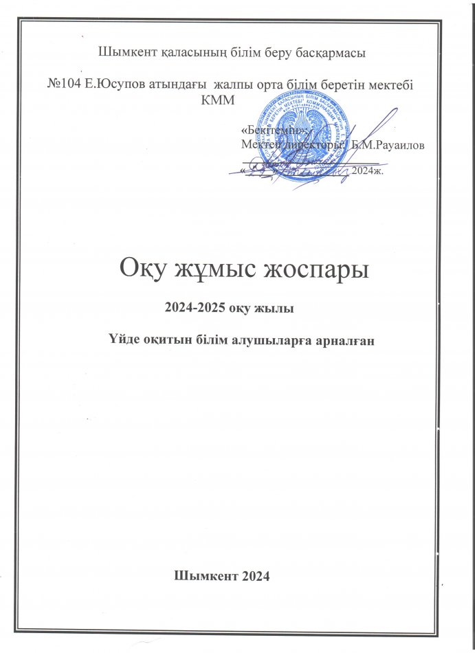 ҮЙДЕ ОҚЫТУ ОҚУ ЖОСПАРЫ 2024-2025 » Общеобразовательная школа №104 имени Е. Юсупова