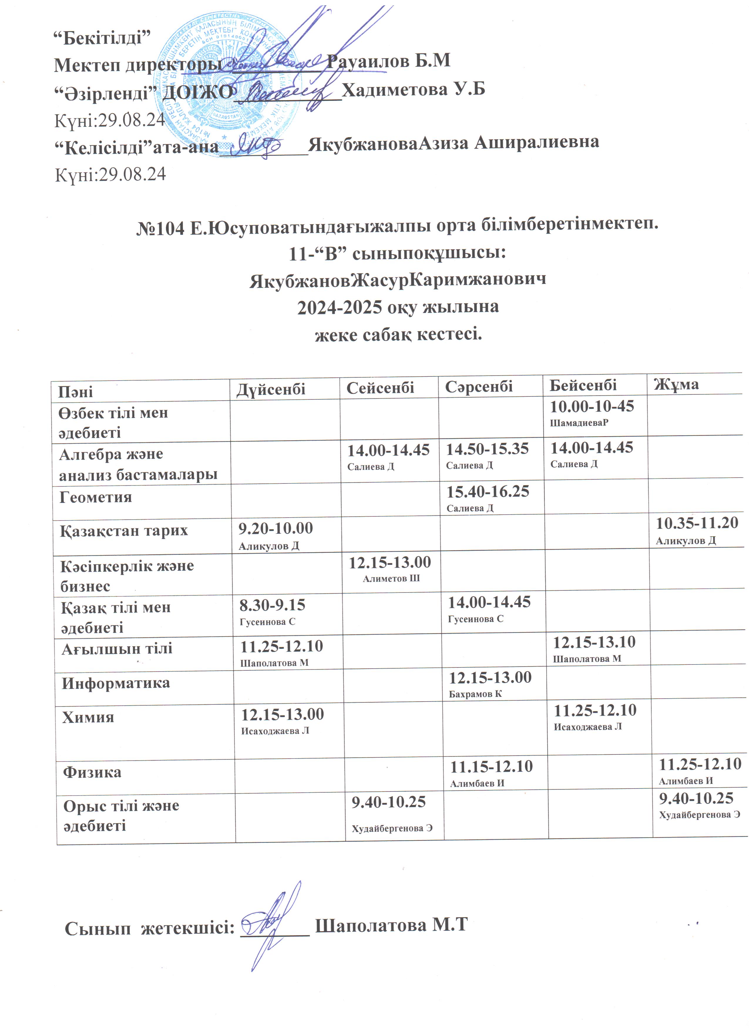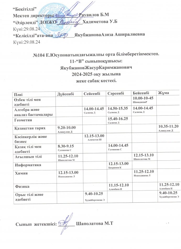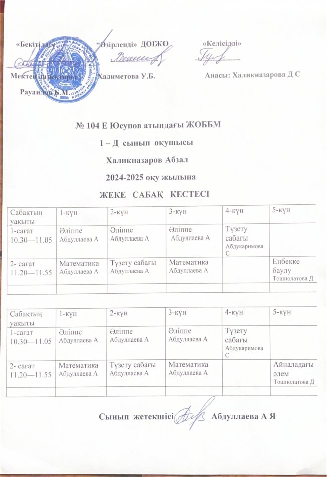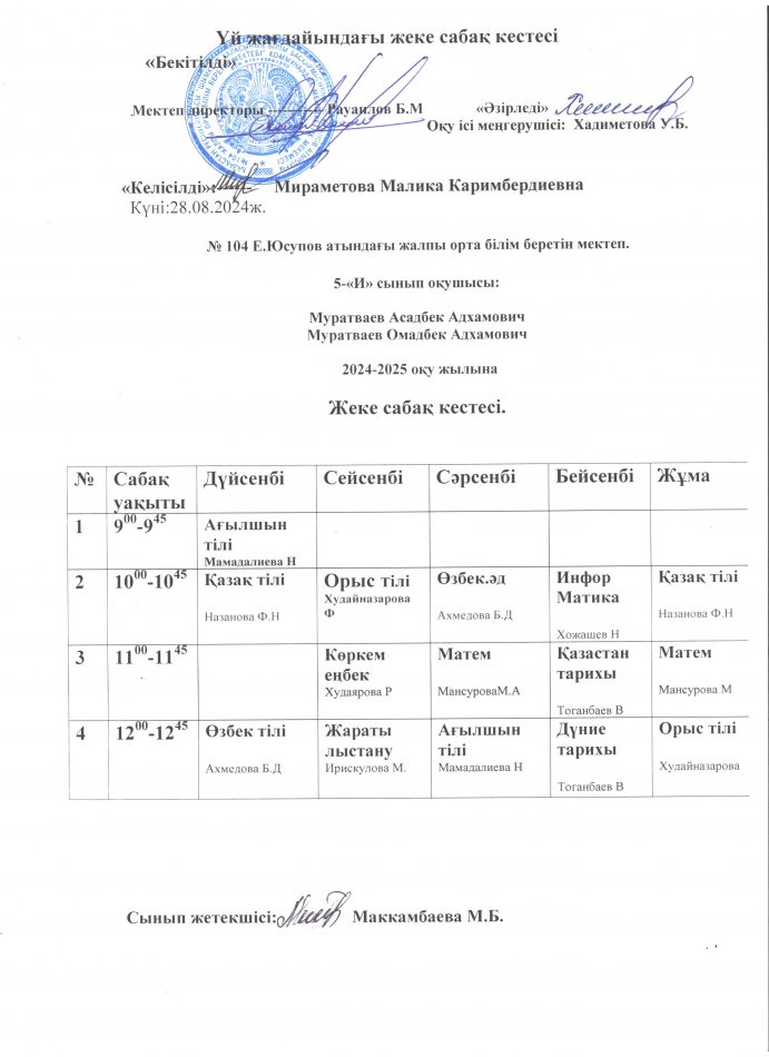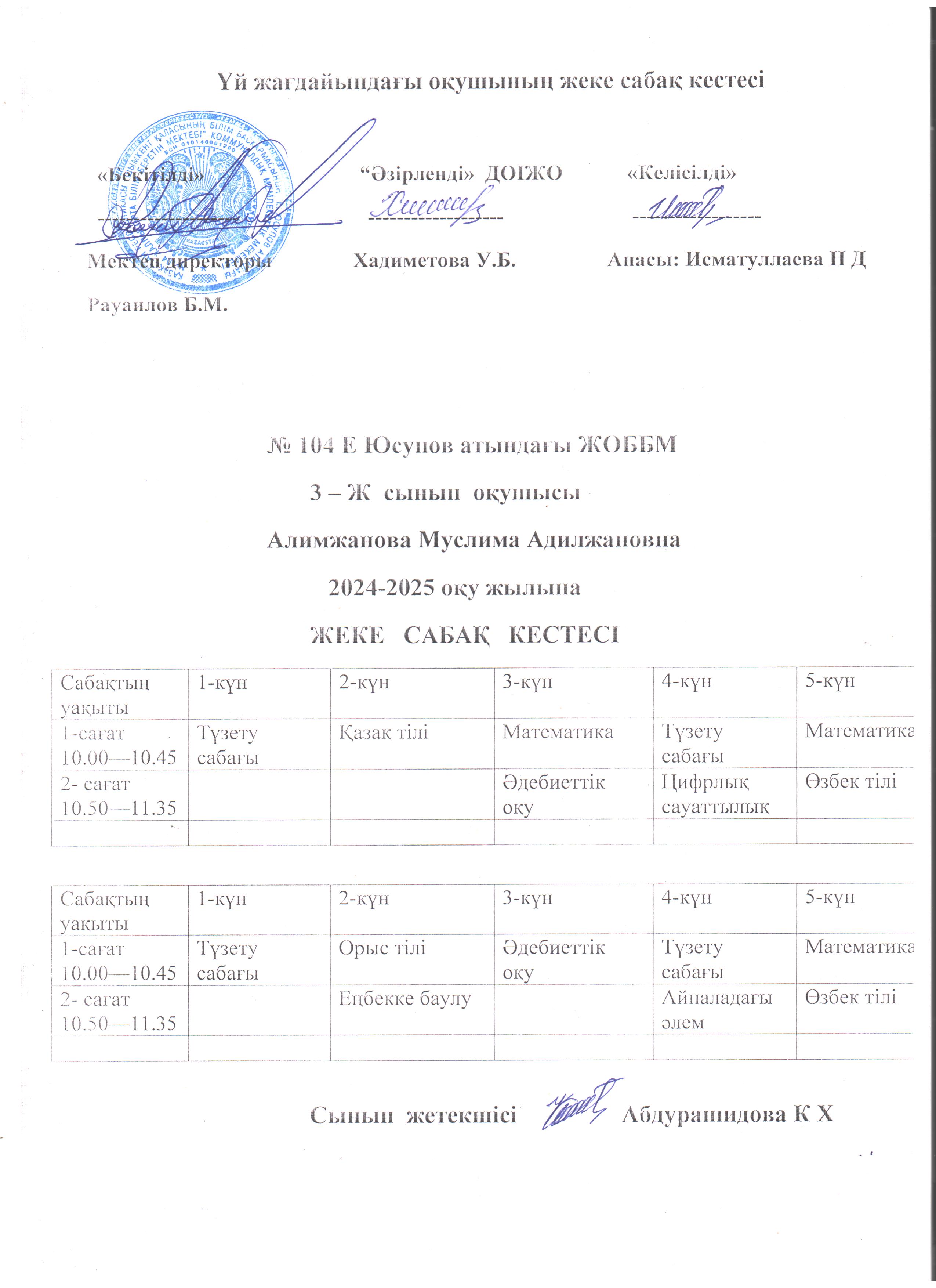 ҮЙДЕ ОҚЫТУ БОЙНША ЖЕКЕ САБАҚ КЕСТЕЛЕРІ 2024-2025 ОҚУ ЖЫЛЫ » Общеобразовательная школа №104 имени Е. Юсупова