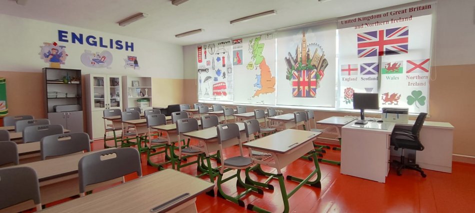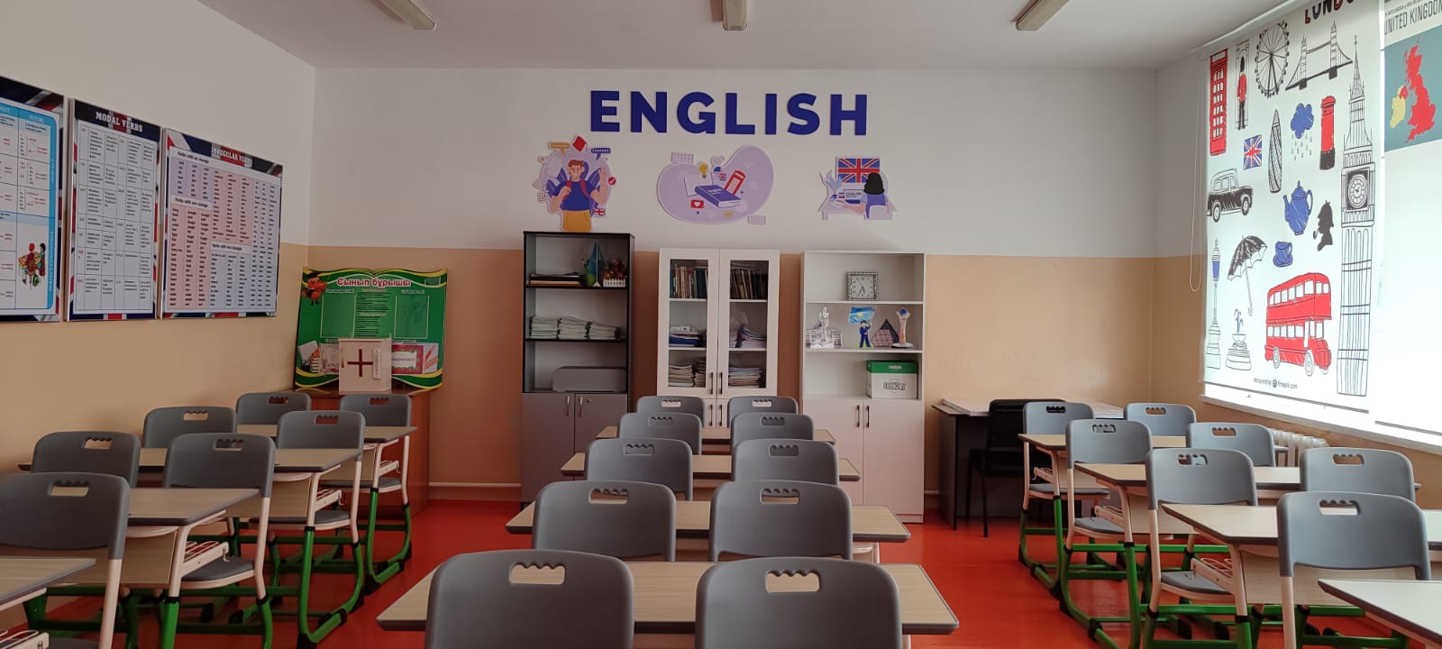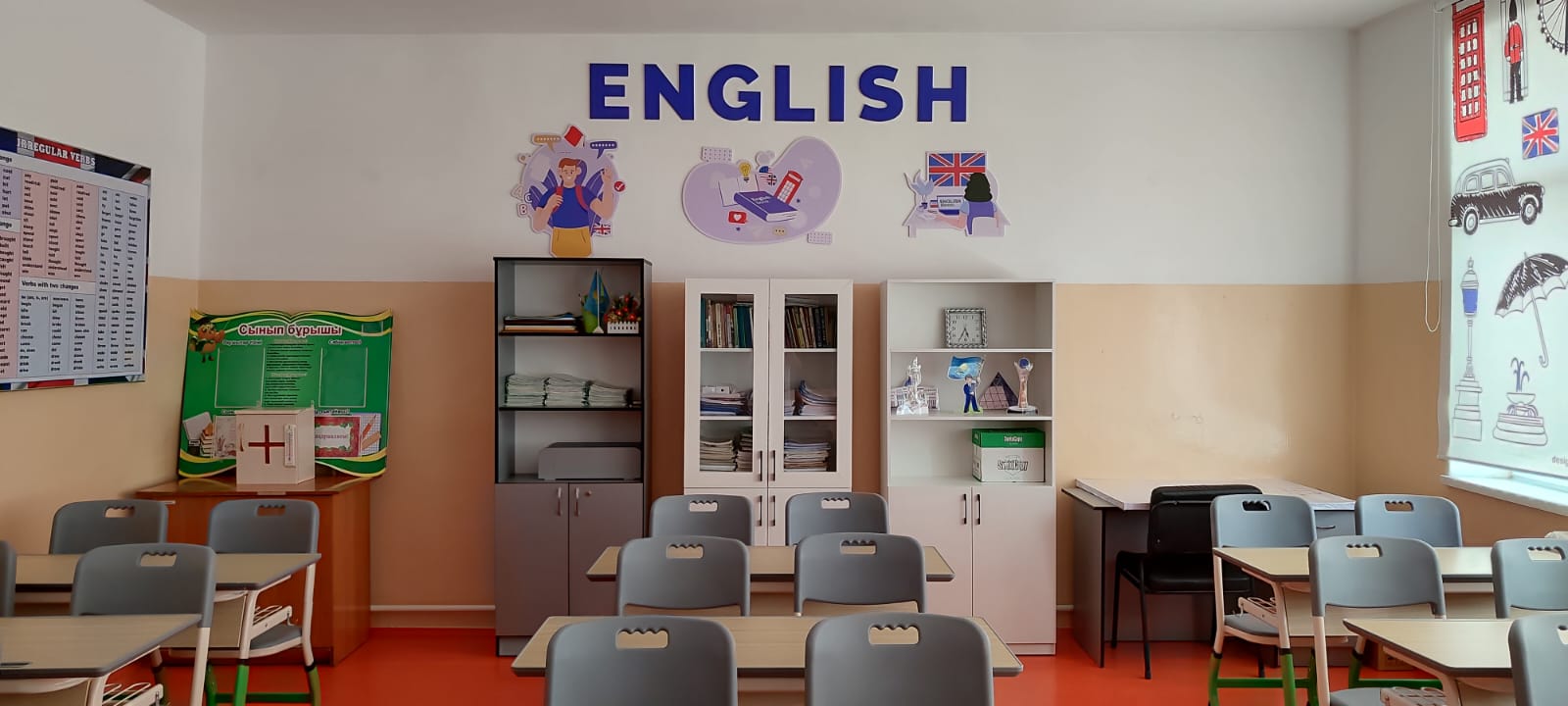 Ағылшын тілі кабинеті мұғалімінің жұмыс орыны болып табылады, білім беру қызметінің іс-әрекеттердің негізгі бағыттарын іске асыру үшін жағдай жасайды және оның табысты болуына септігін тигізеді. Бұл ағылшын тілі мұғалімінің жұмысының барлық жүйесінің жеткілікті күрделі буыны болып табылады. Балалардың ағылшын тілінде тілдік қорының дамуы ағылшын тілі кабинетінің жабдықталуына байланысты болып келеді.