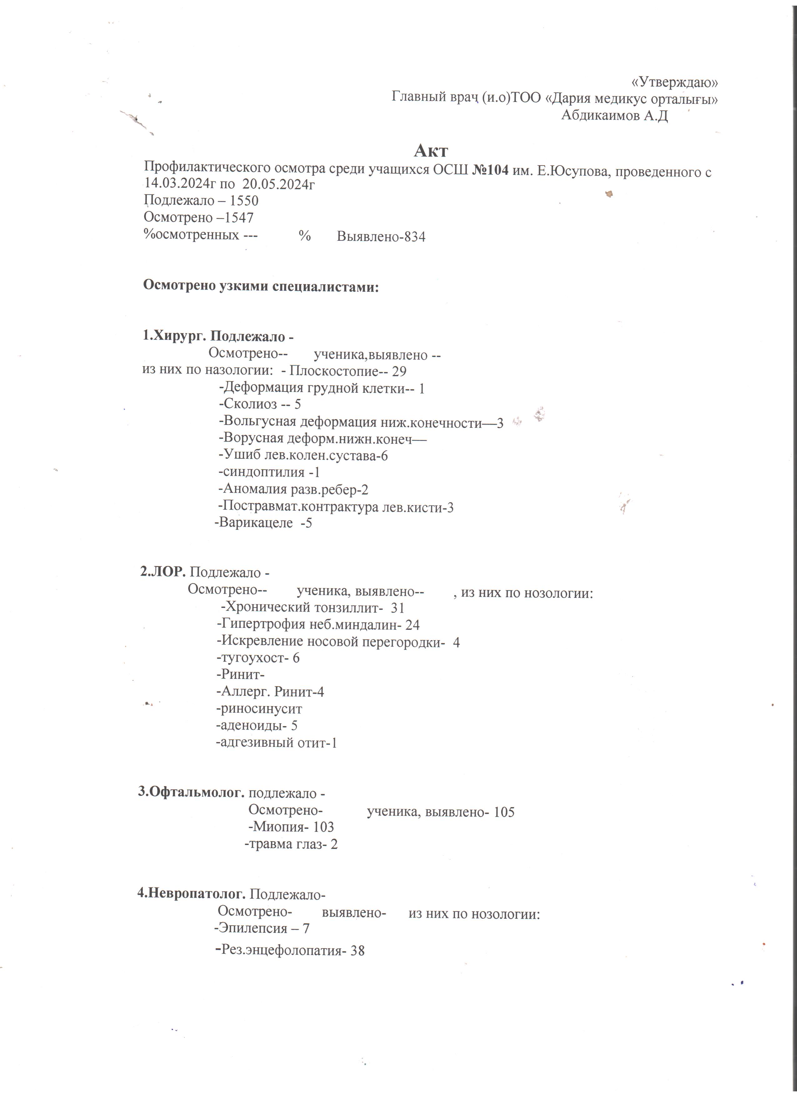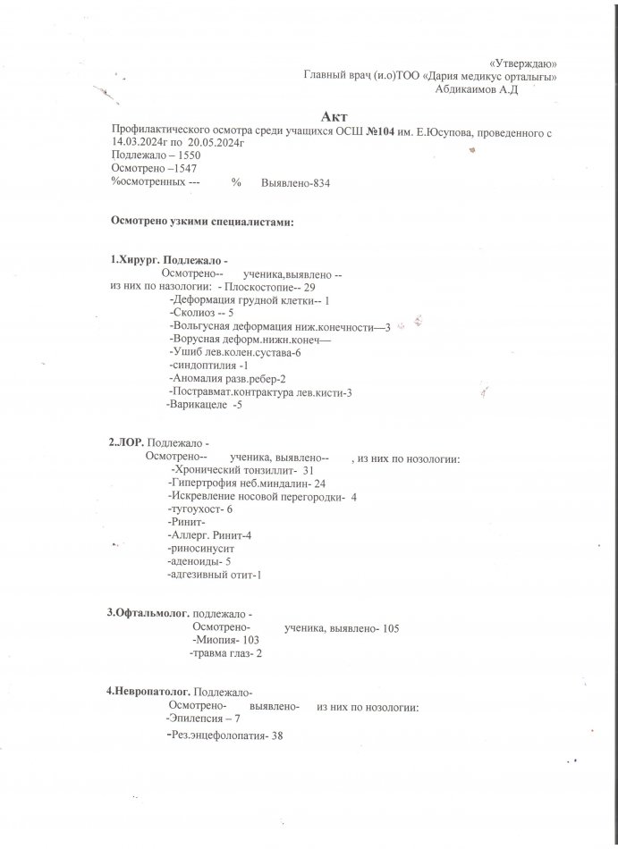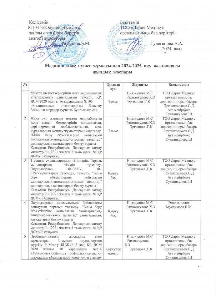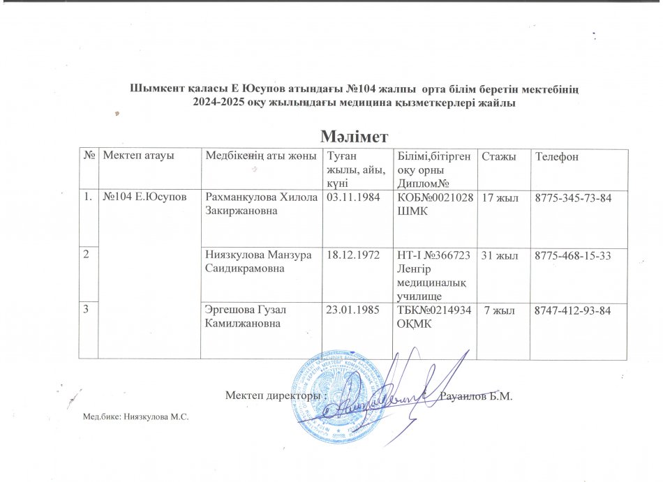 МЕДБИКЕЛЕРДІҢ 2024-2025 ОҚУ ЖЫЛЫНА АРНАЛҒАН ҚҰЖАТТАРЫ » Общеобразовательная школа №104 имени Е. Юсупова