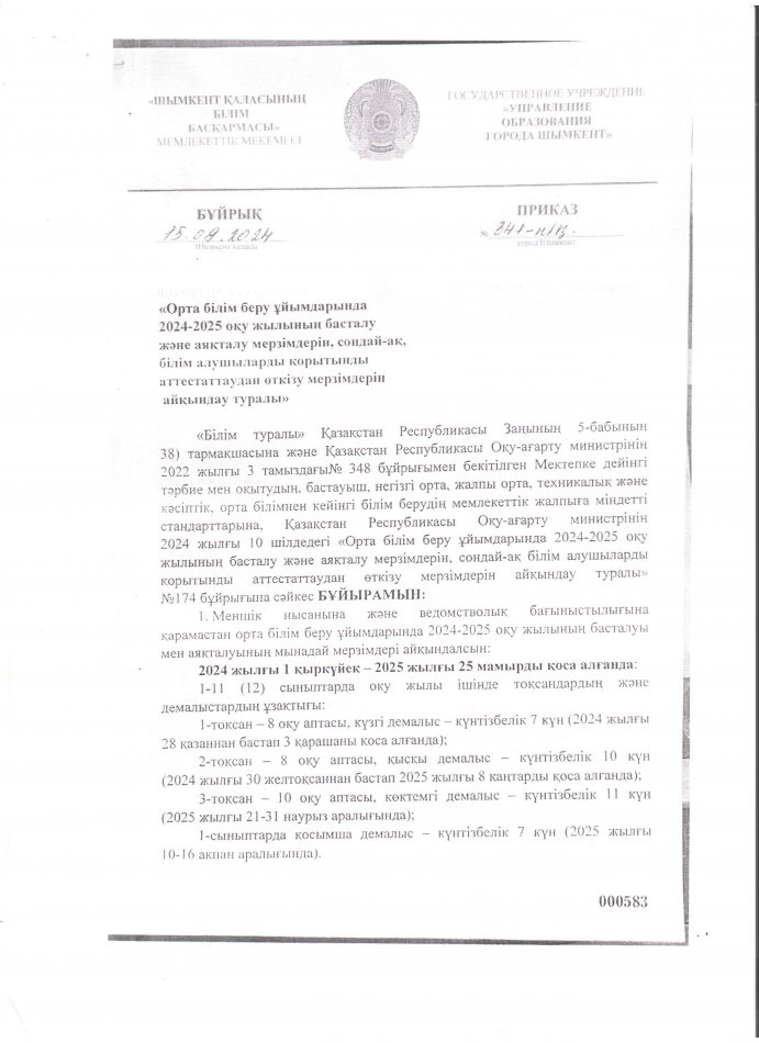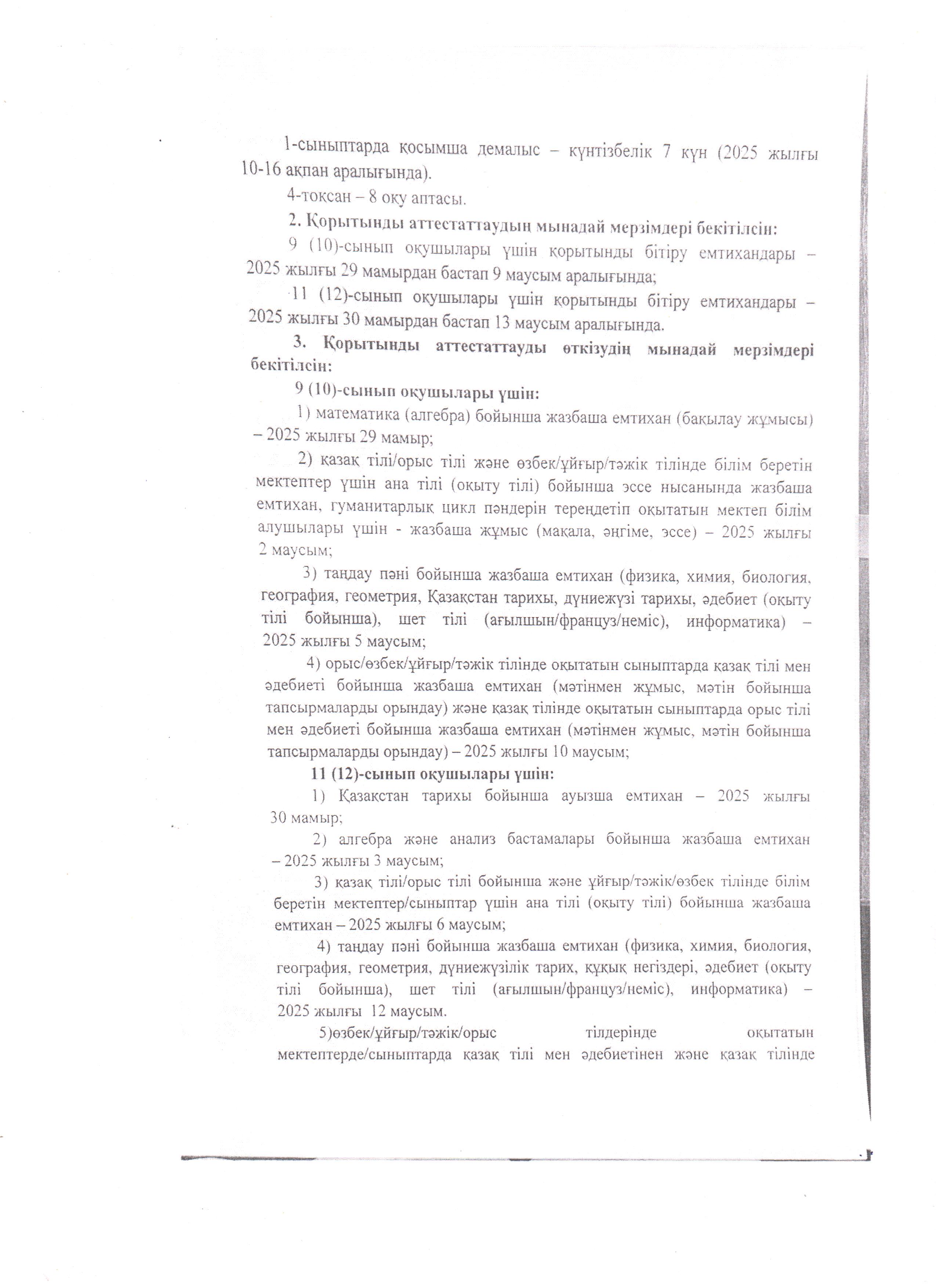 » » » МЕКТЕПТЕ 2024-2025 ОҚУ ЖЫЛЫҢ БАСТАЛУЫ МЕН АЯҚТАЛУЫНЫҢ БҰЙРЫҒЫ