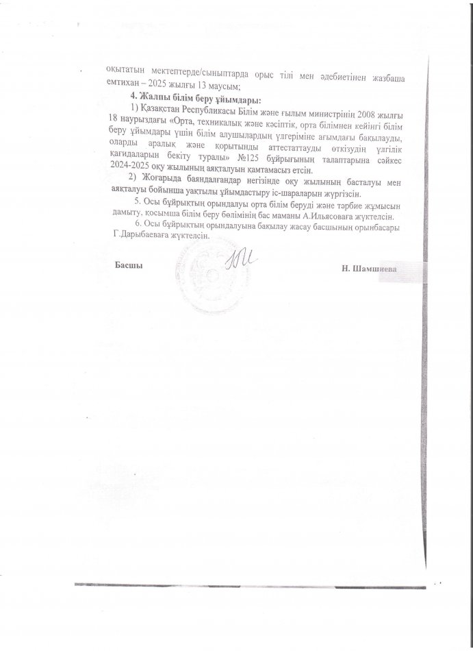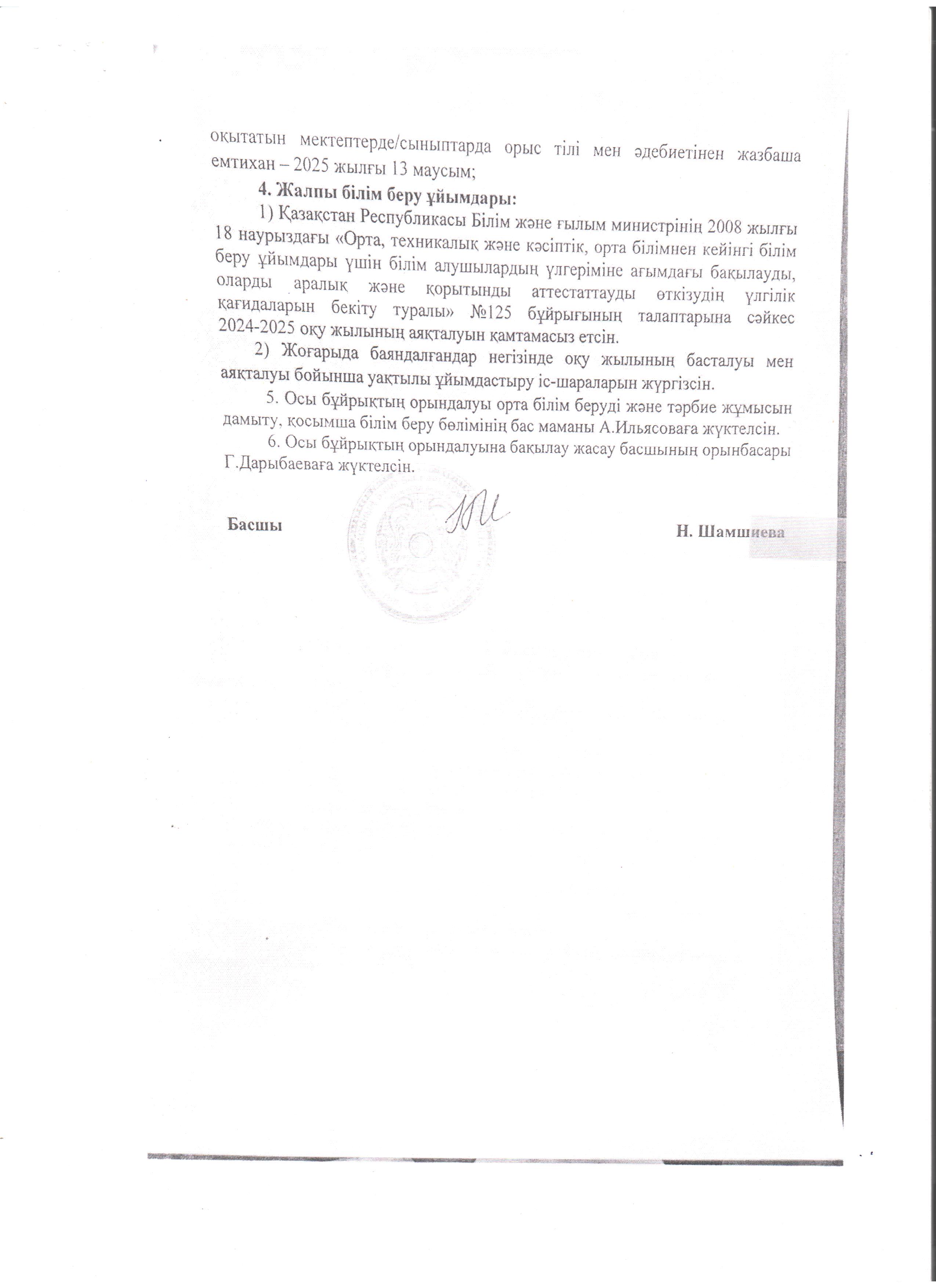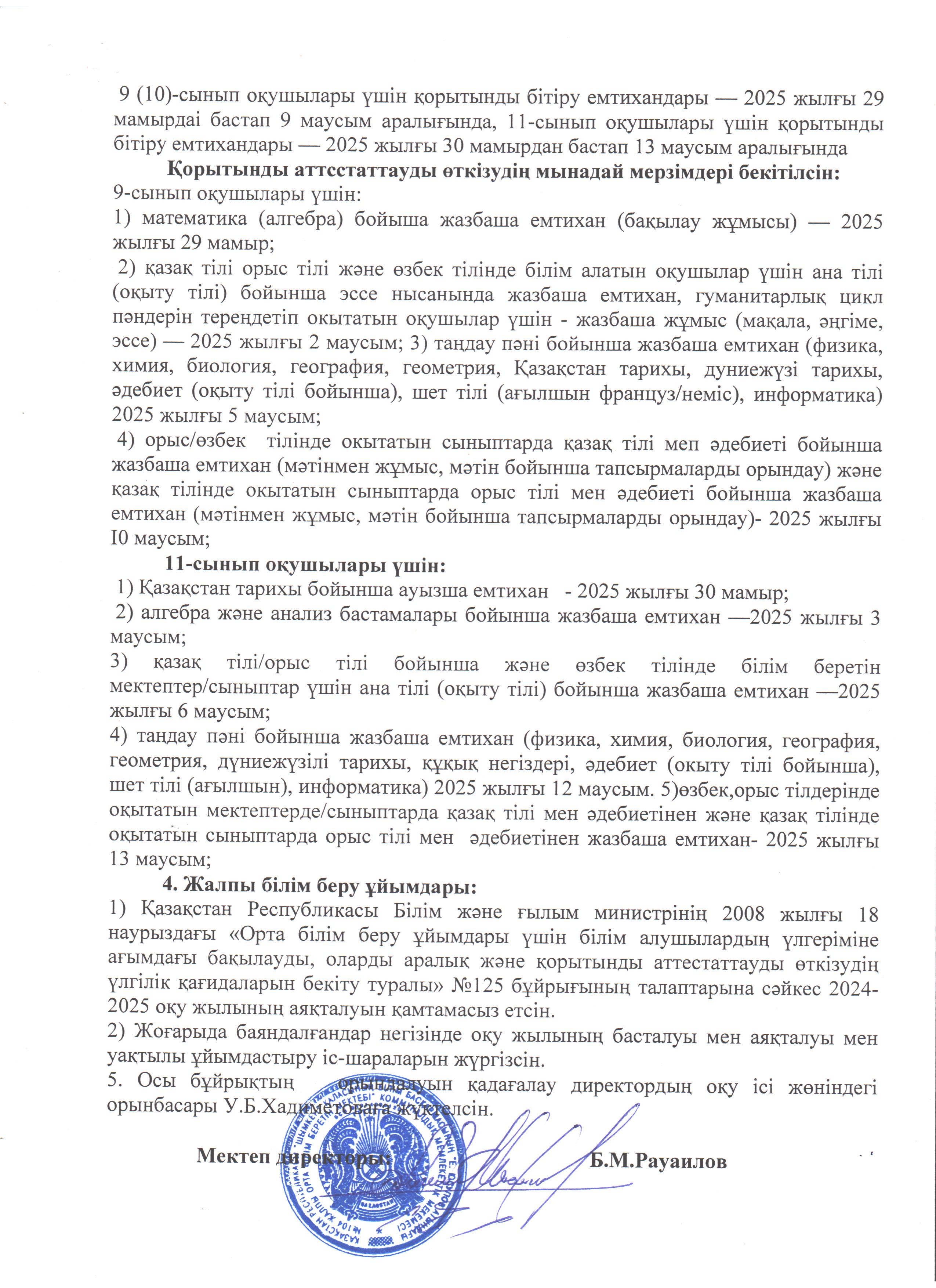 МЕКТЕПТЕ 2024-2025 ОҚУ ЖЫЛЫҢ БАСТАЛУЫ МЕН АЯҚТАЛУЫНЫҢ БҰЙРЫҒЫ