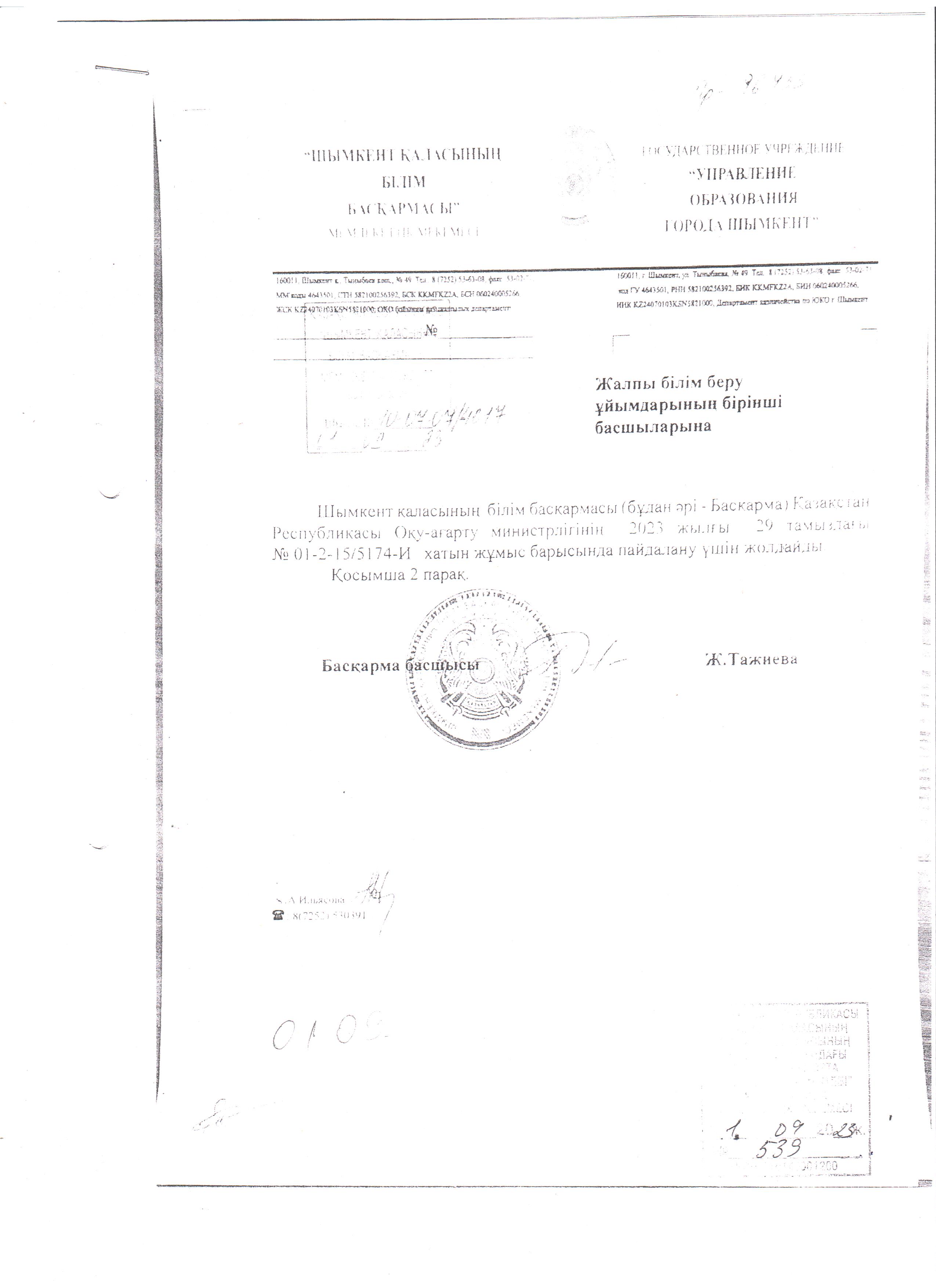 Шымкент қаласының білім басқармасының