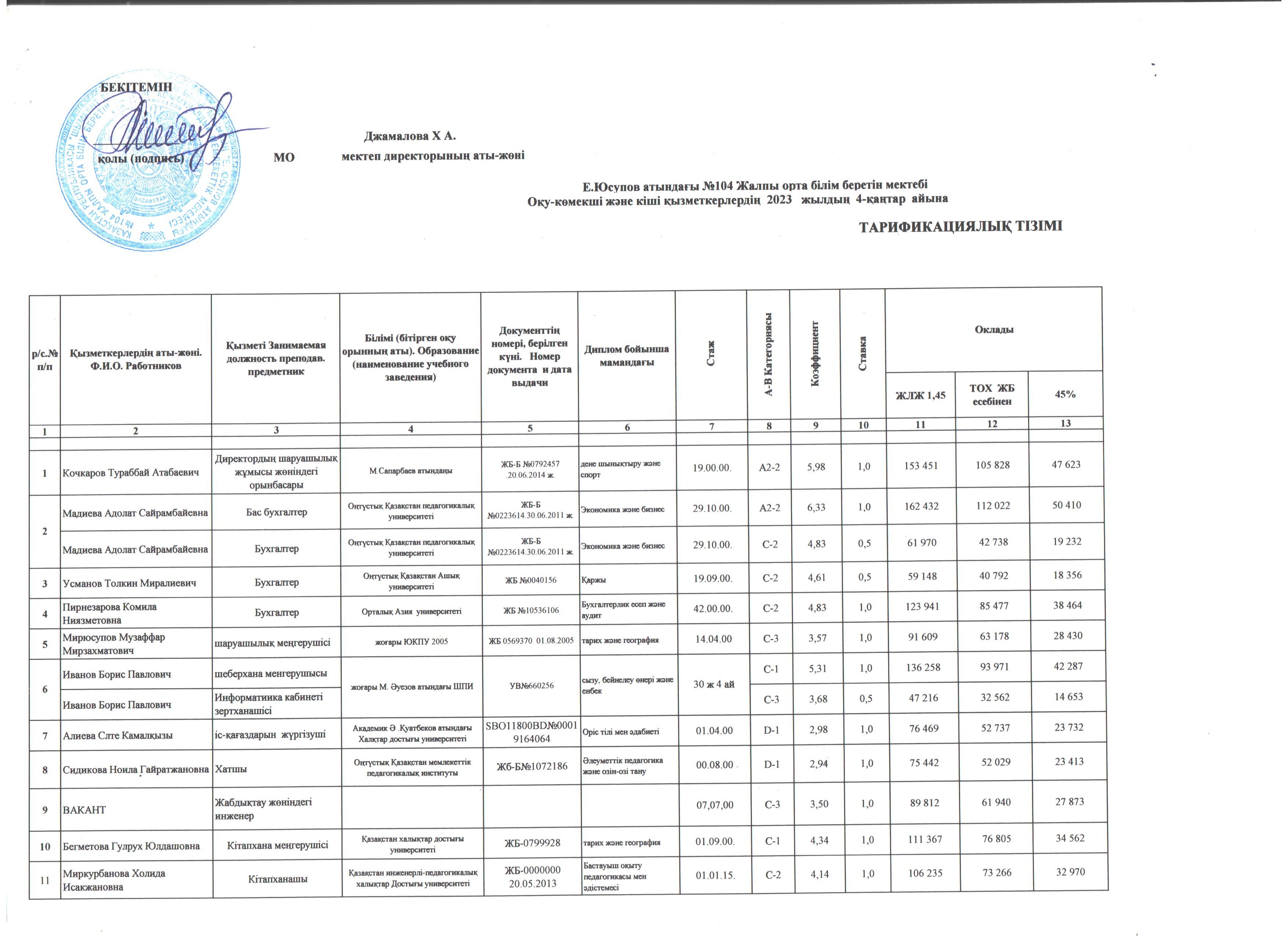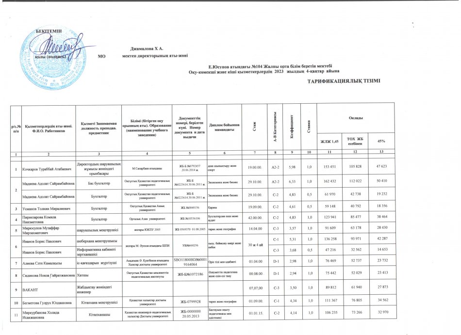 2023 жыл Қаңтар » Общеобразовательная школа №104 имени Е. Юсупова