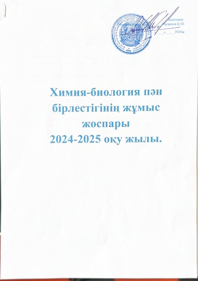 ХИМИЯ ЖӘНЕ БИОЛОГИЯ ӘДІСТЕМЕЛІК БІРЛЕСТІГІНІҢ 2024-2025 ОҚУ ЖЫЛЫНА ЖОСПАР