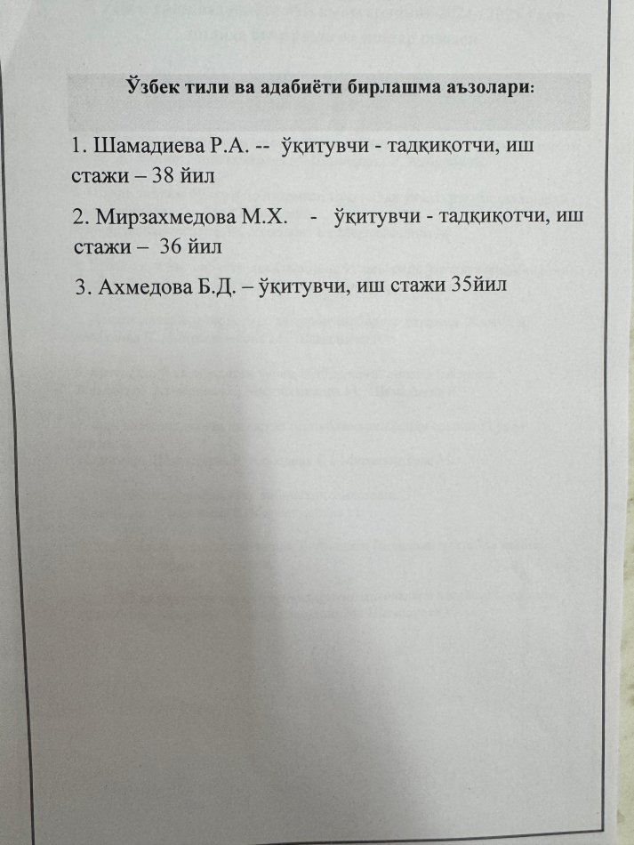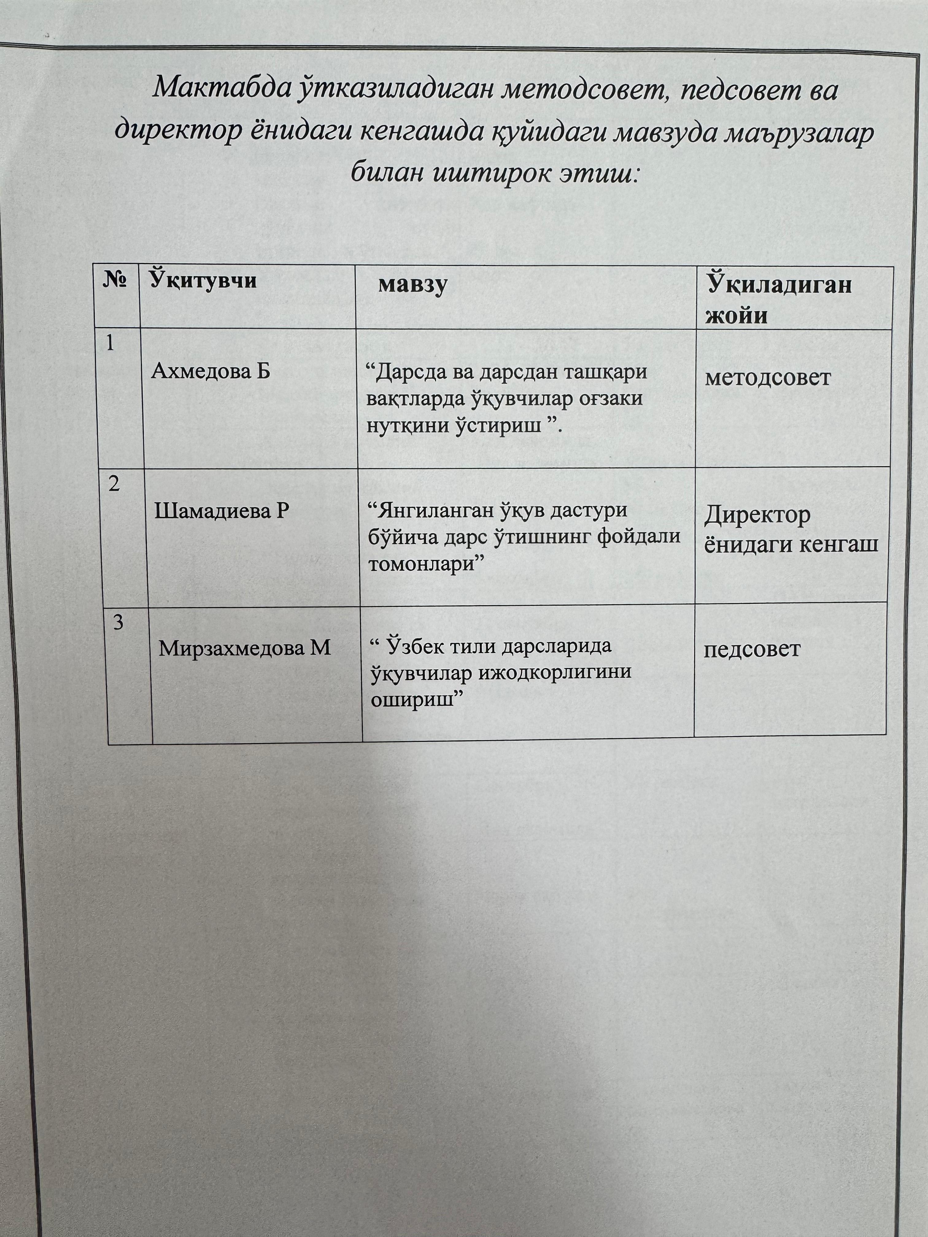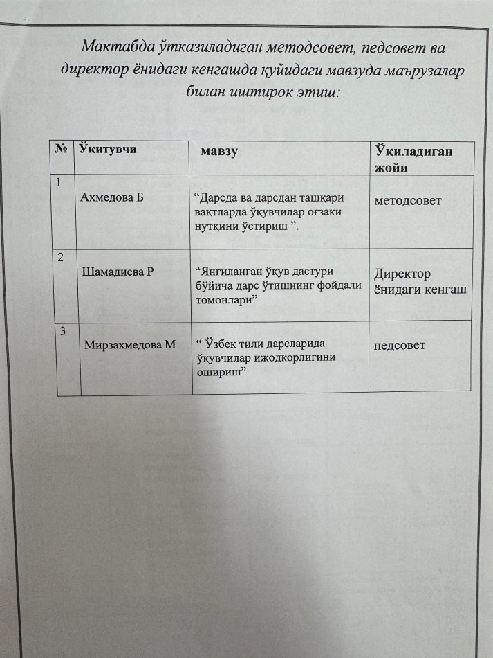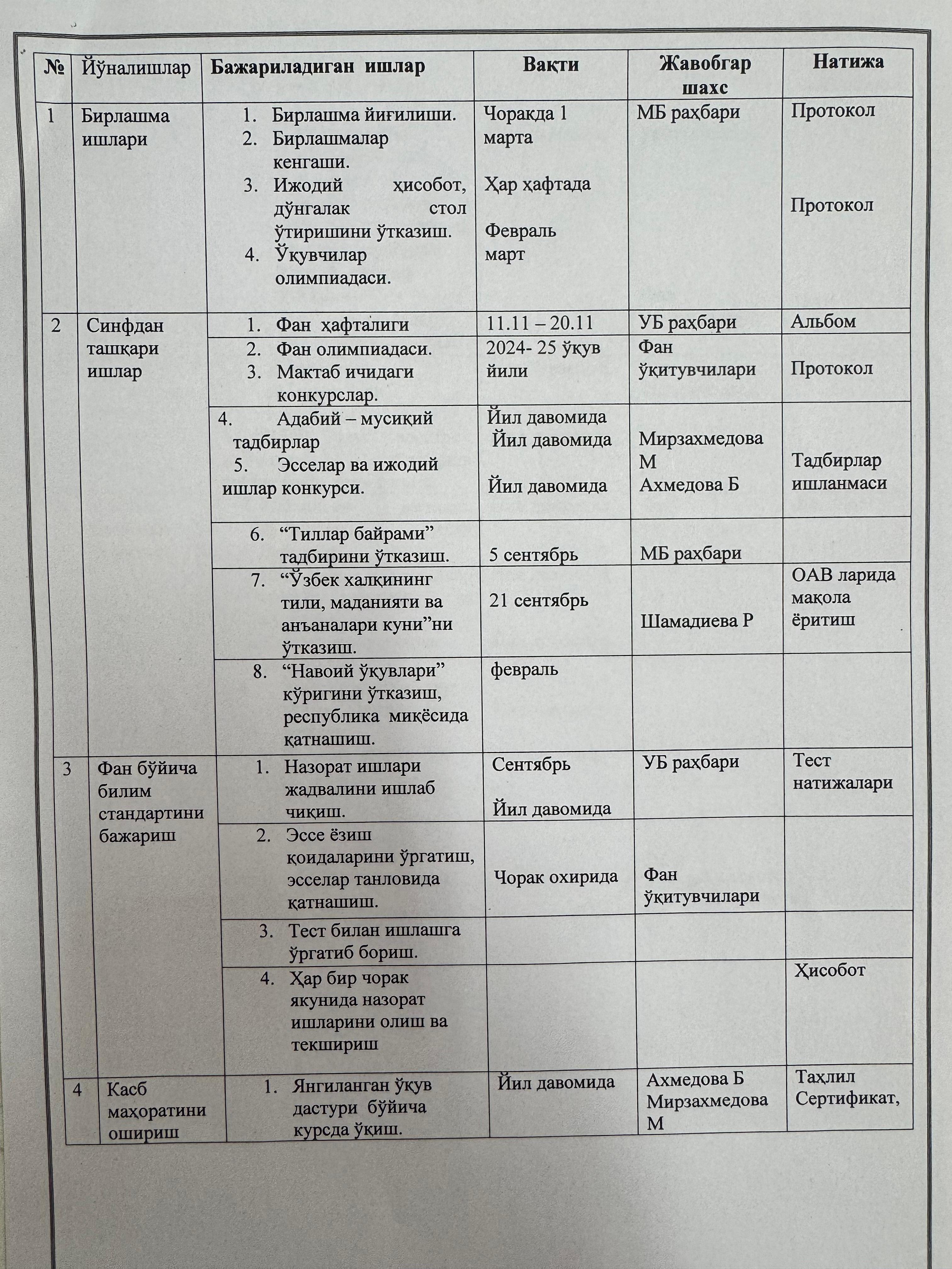 29 август 2024 0 1 2 3 4 5 ӨЗБЕК ТІЛІ МЕН ӘДЕБИЕТІ ӘДІСТЕМЕЛІК БІРЛЕСТІГІНІҢ 2024-2025 ОҚУ ЖЫЛЫНА ЖОСПАРЫ