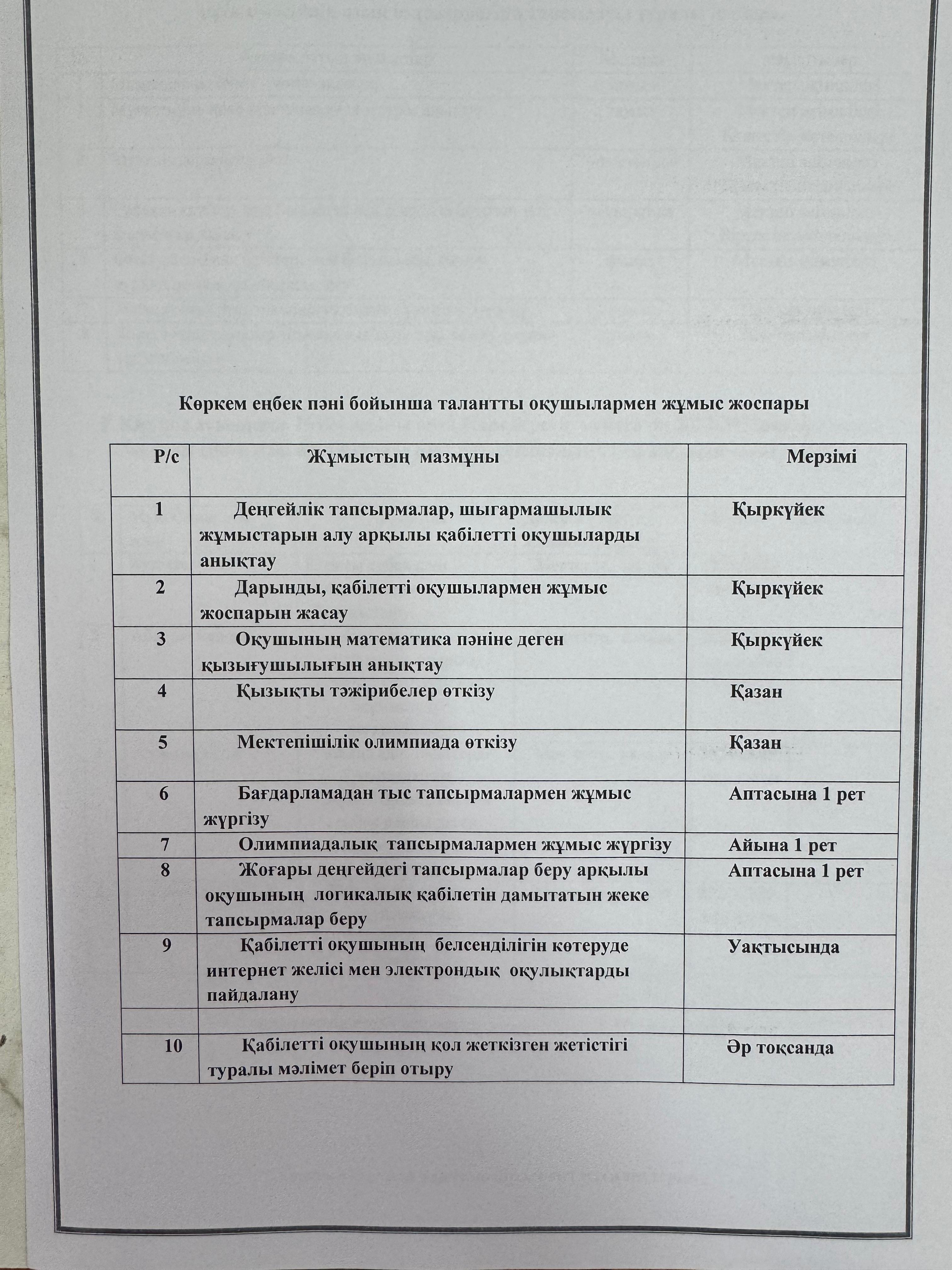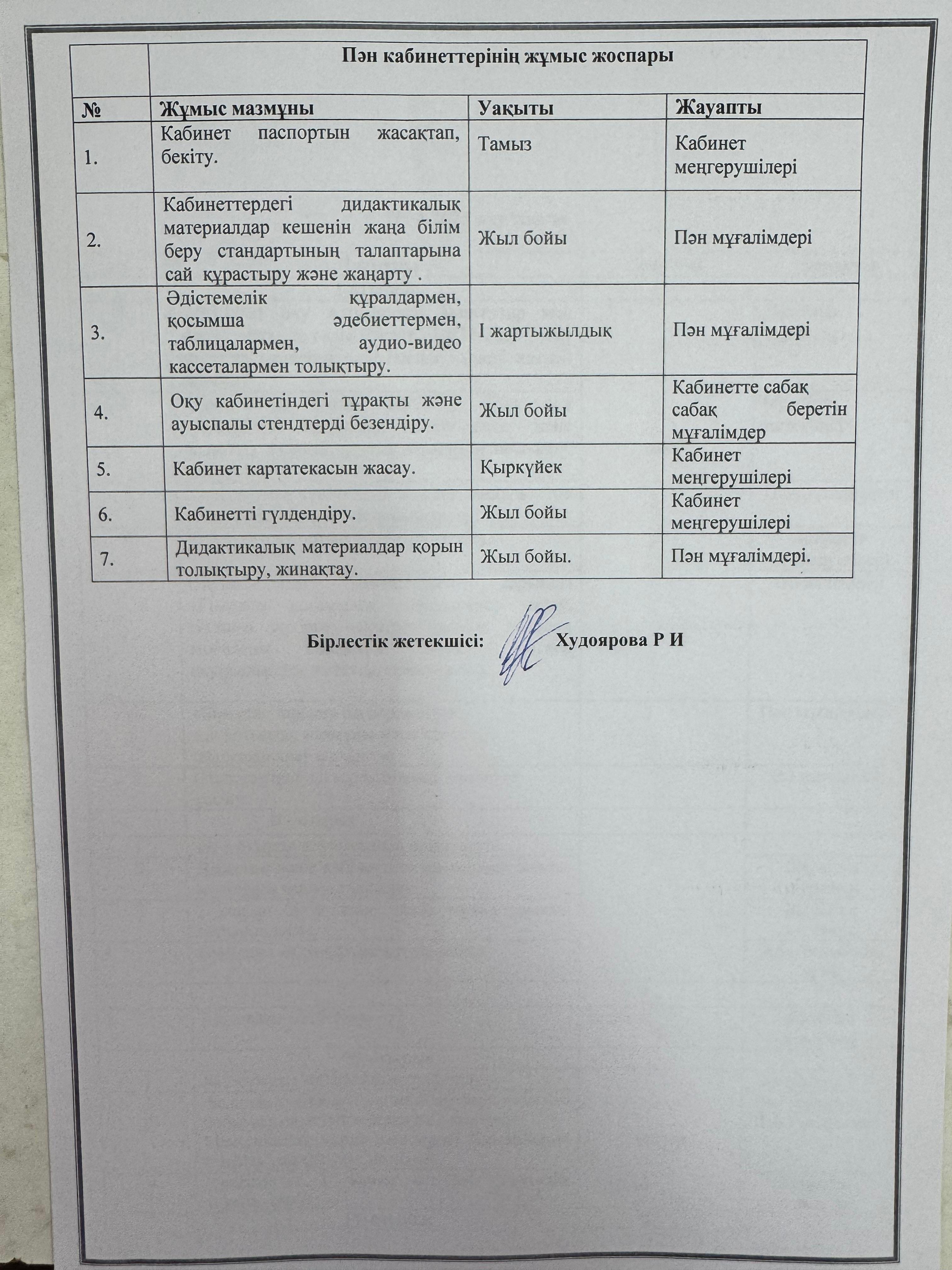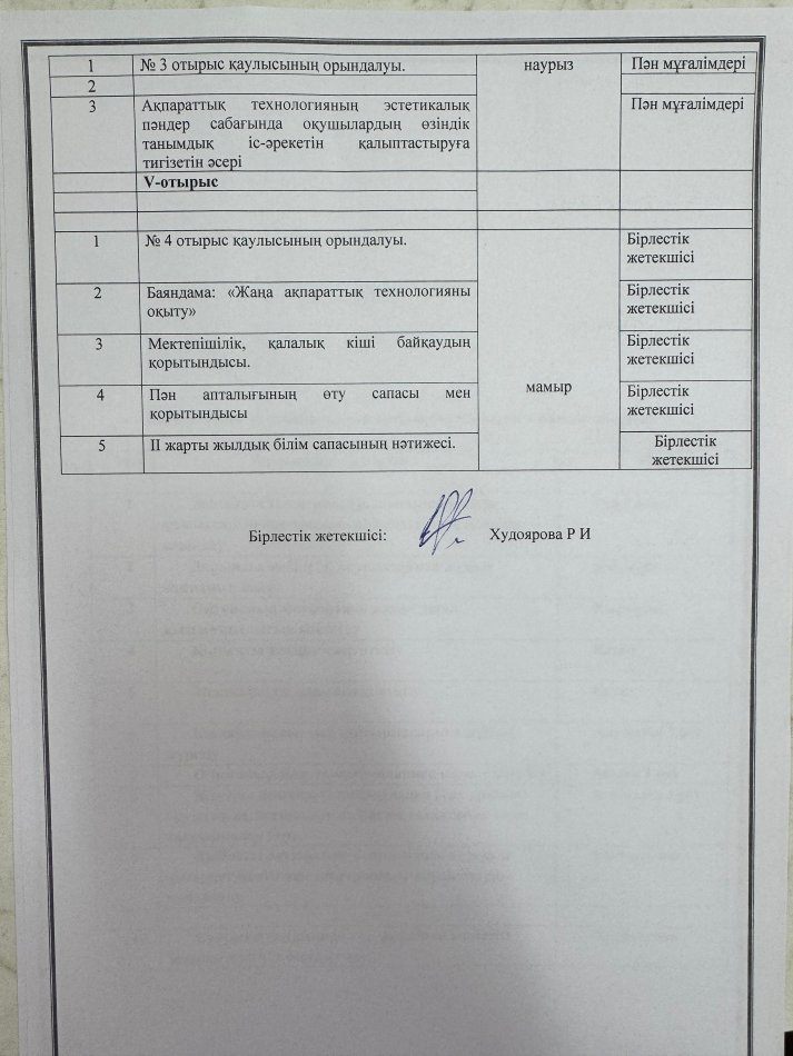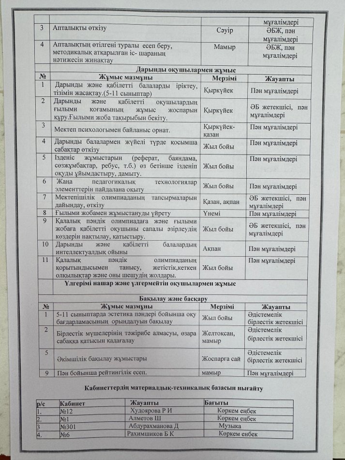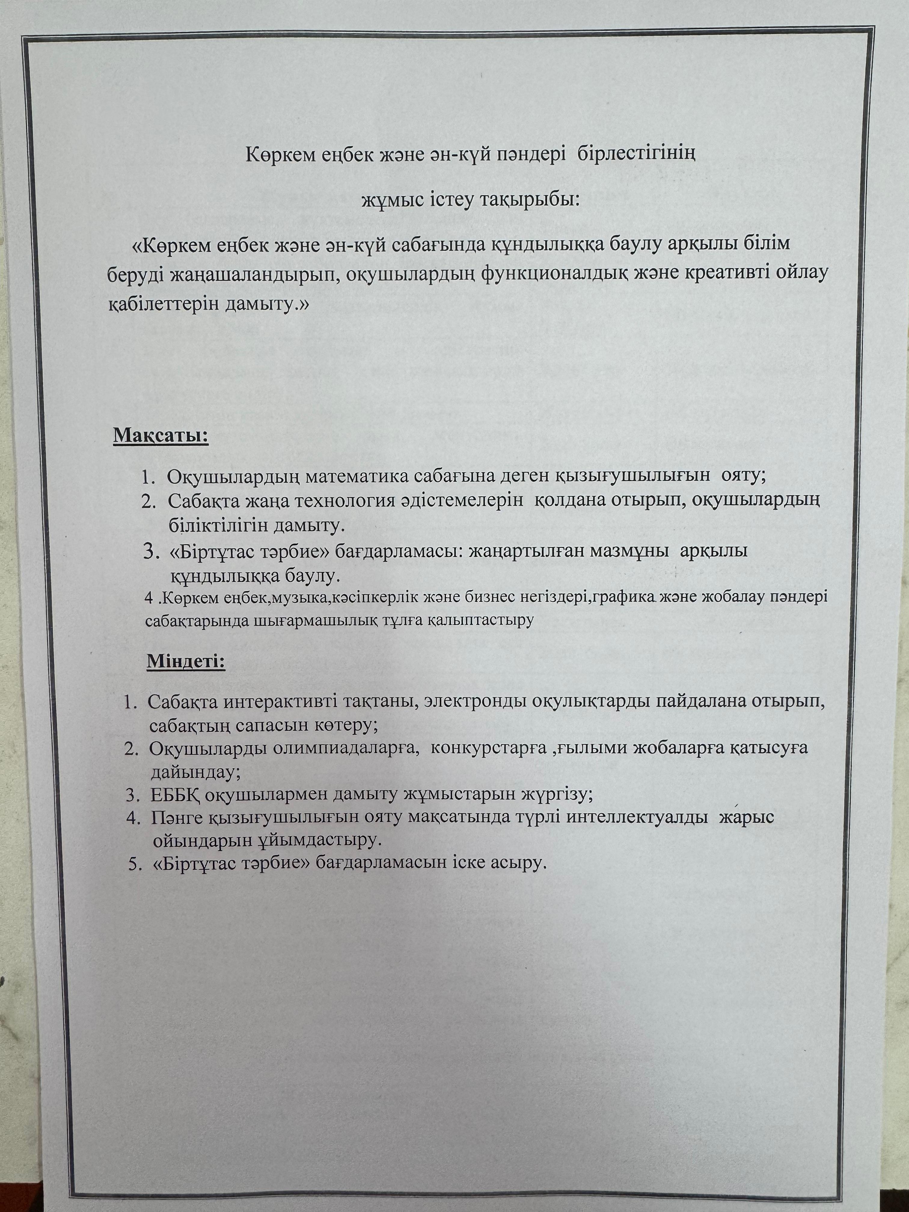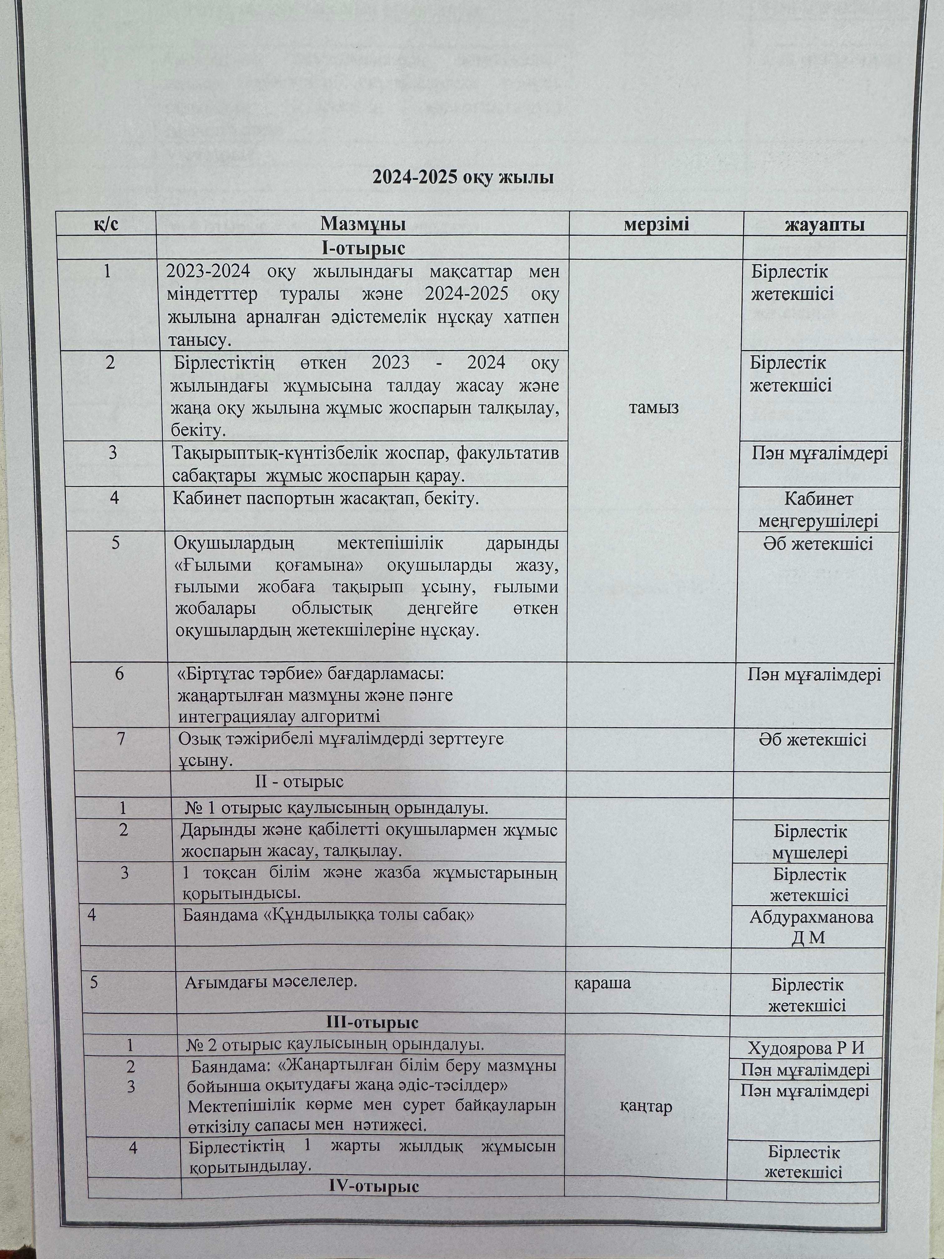29 август 2024 0 1 2 3 4 5 КӨРКЕМ ЕҢБЕК ЖӘНЕ ӘН-КҮЙ ӘДІСТЕМЕЛІК БІРЛІСТІГІНІҢ 2024-2025 ОҚУ ЖЫЛЫНА ЖОСПАРЫ
