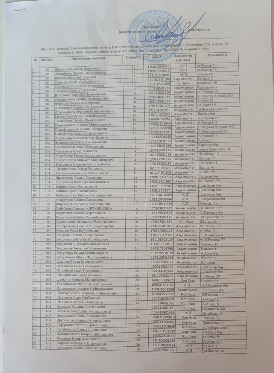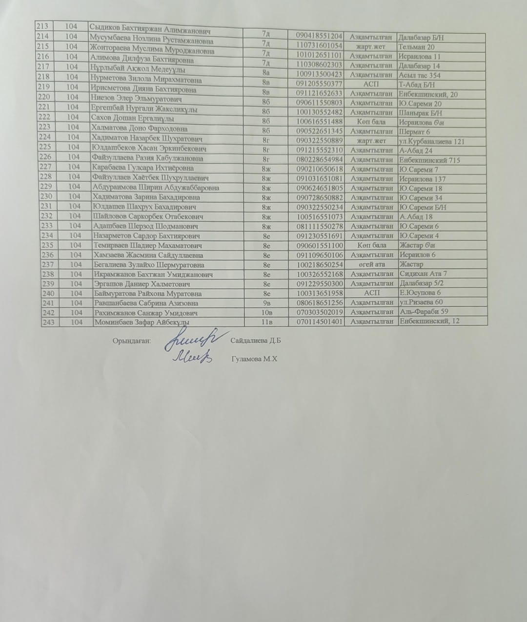 01 сентябрь 2024 0 1 2 3 4 5 Ыстық тамақпен қамтылған оқушылар тізімі (2023-2024, 2024-2025 оқу жылдары) 2024-2025 оқу жылы
